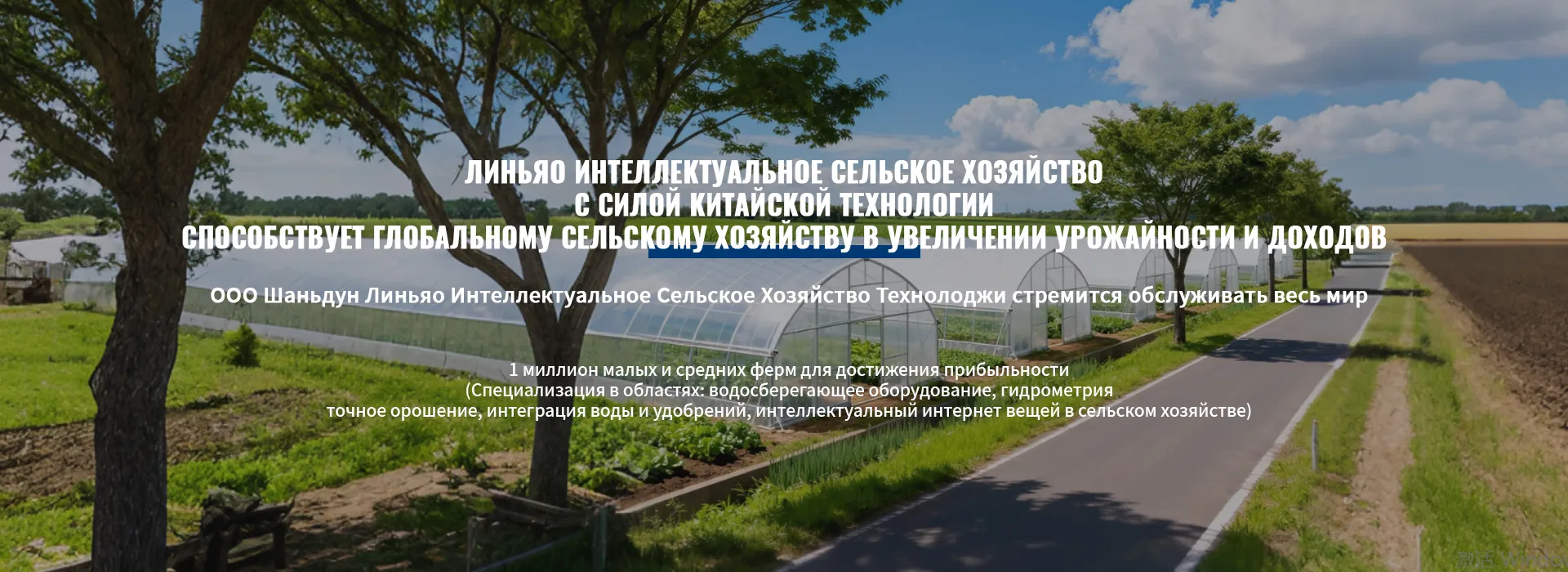 ООО Шаньдун Линьяо Интеллектуальное Сельское Хозяйство Технолоджи является частным технологическим предприятием, объединяющим научные исследования, разработку, производство, продажи, проектирование и строительство и т.д. в одно целое. Основно принимает производственное индивидуальное изготовление интеллектуального оборудования интеграции воды и удобрений, частотного автоматического оборудования, оборудования для фильтрации воды, дистанционного управления клапанами, оборудования высокого и низкого напряжения; проектирование и строительство гидротехнических сооружений, интеллектуальных сельскохозяйственных парков, высококачественных сельскохозяйственных полей и различных сельскохозяйственных проектов и т.д.