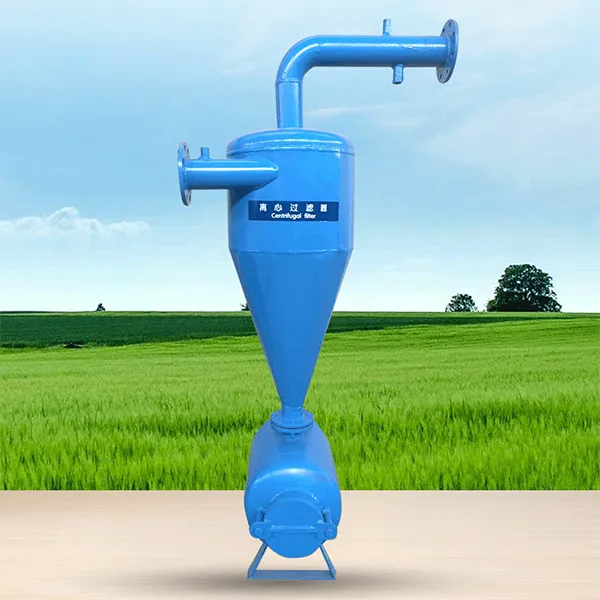 1. Центробежные фильтры обычно используются для первичной обработки подземных и поверхностных вод с высоким содержанием песка, часто применяются в качестве первичной фильтрации воды в микрокапельных системах орошения. Принцип работы центробежного фильтра основан на центробежной силе, создаваемой высокоскоростным вращательным потоком воды, которая отделяет песчинки и другие тяжелые примеси от воды, внутри нет фильтрующей сетки и разборных частей, что обеспечивает удобное техническое обслуживание.